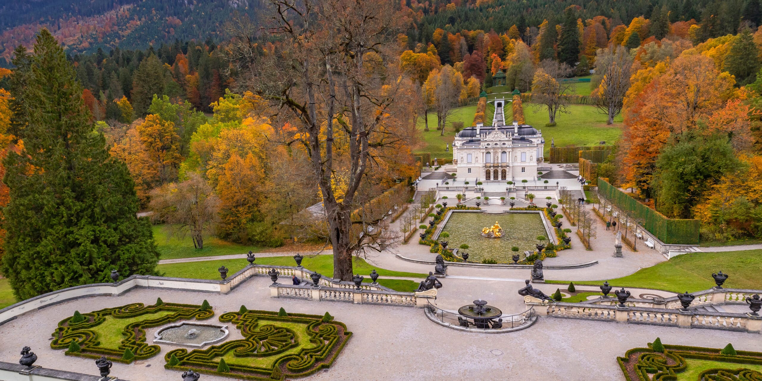 Entdecken Sie die opulente Schönheit von Schloss Linderhof, dem kleinsten der drei Schlösser König Ludwigs II. Das Einzige, das zu Lebzeiten König Ludwigs II. fertig gestellt wurde und er länger bewohnt hat.