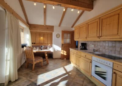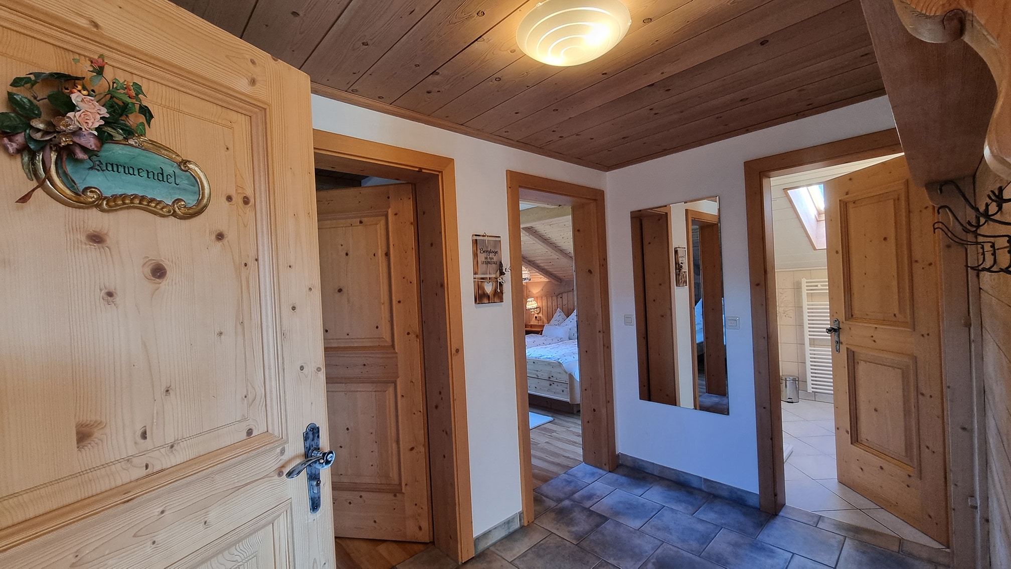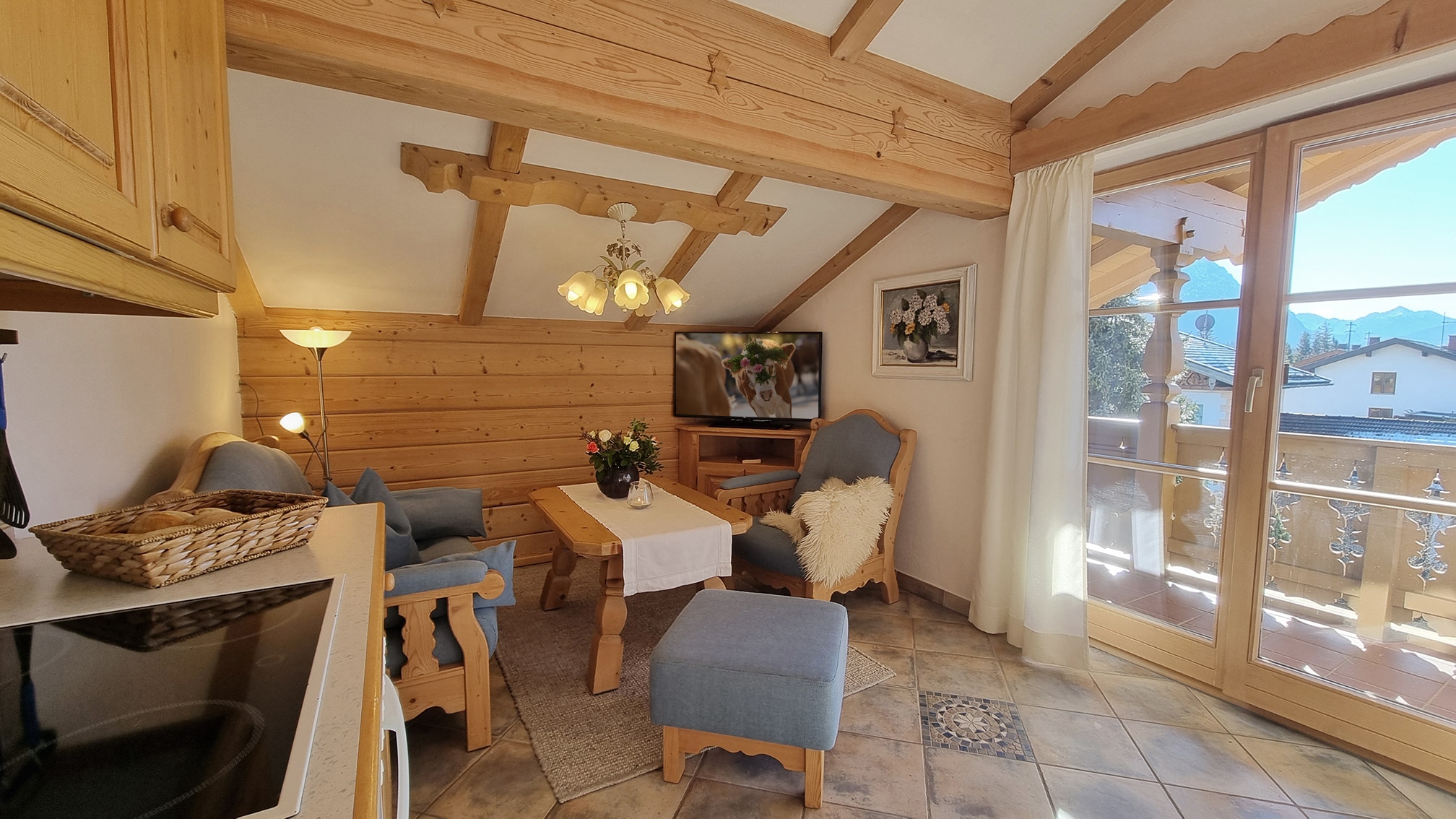 Die exklusive Ferienwohnung „Karwendel“ begeistert mit herrlichem Gebirgsrundblick und einem großen Südbalkon mit Gartenmöbeln. Auf über 60 m² erwartet Sie eine komfortable, allergikerfreundliche Wohnung mit Wohnküche, gemütlicher Sitzecke und Couch, zwei separaten Schlafzimmern sowie Dusche/WC. Die voll ausgestattete Küche mit Geschirrspüler, Backofen, Mikrowelle und vielen Extras sowie Sat-TV, großem Flachbildschirm und WLAN sorgen für einen rundum entspannten Aufenthalt – ideal für einen Aufenthalt in den Bergen.