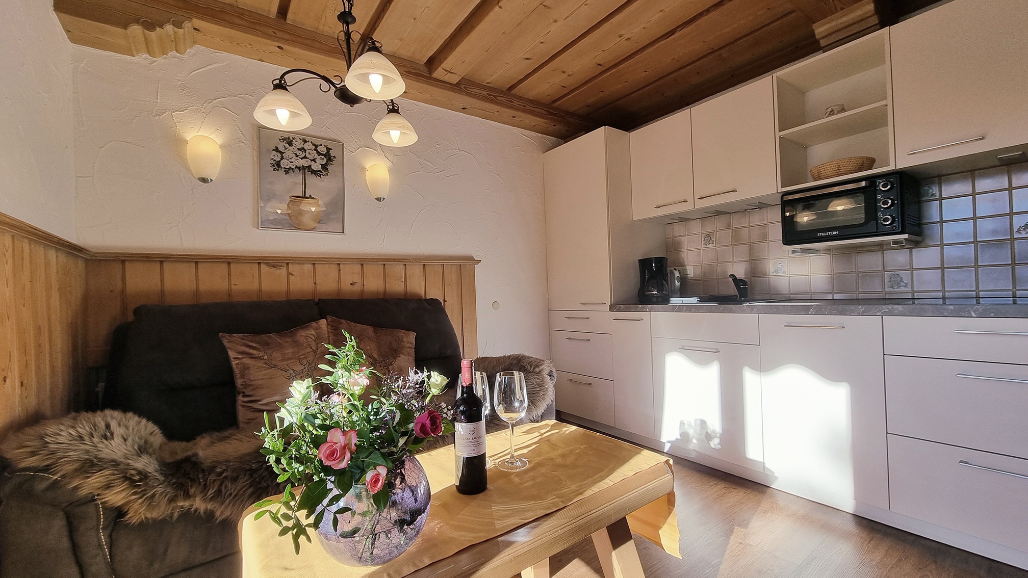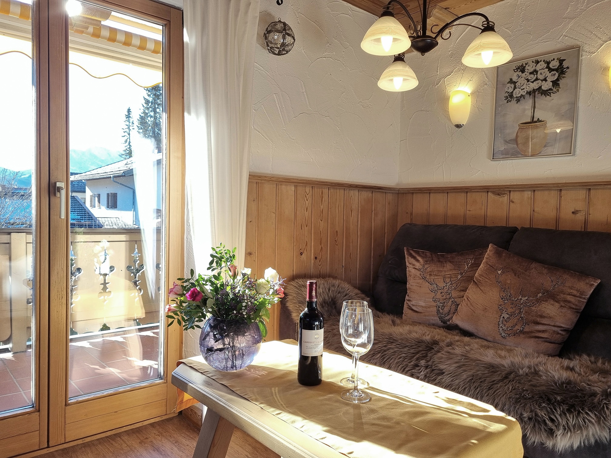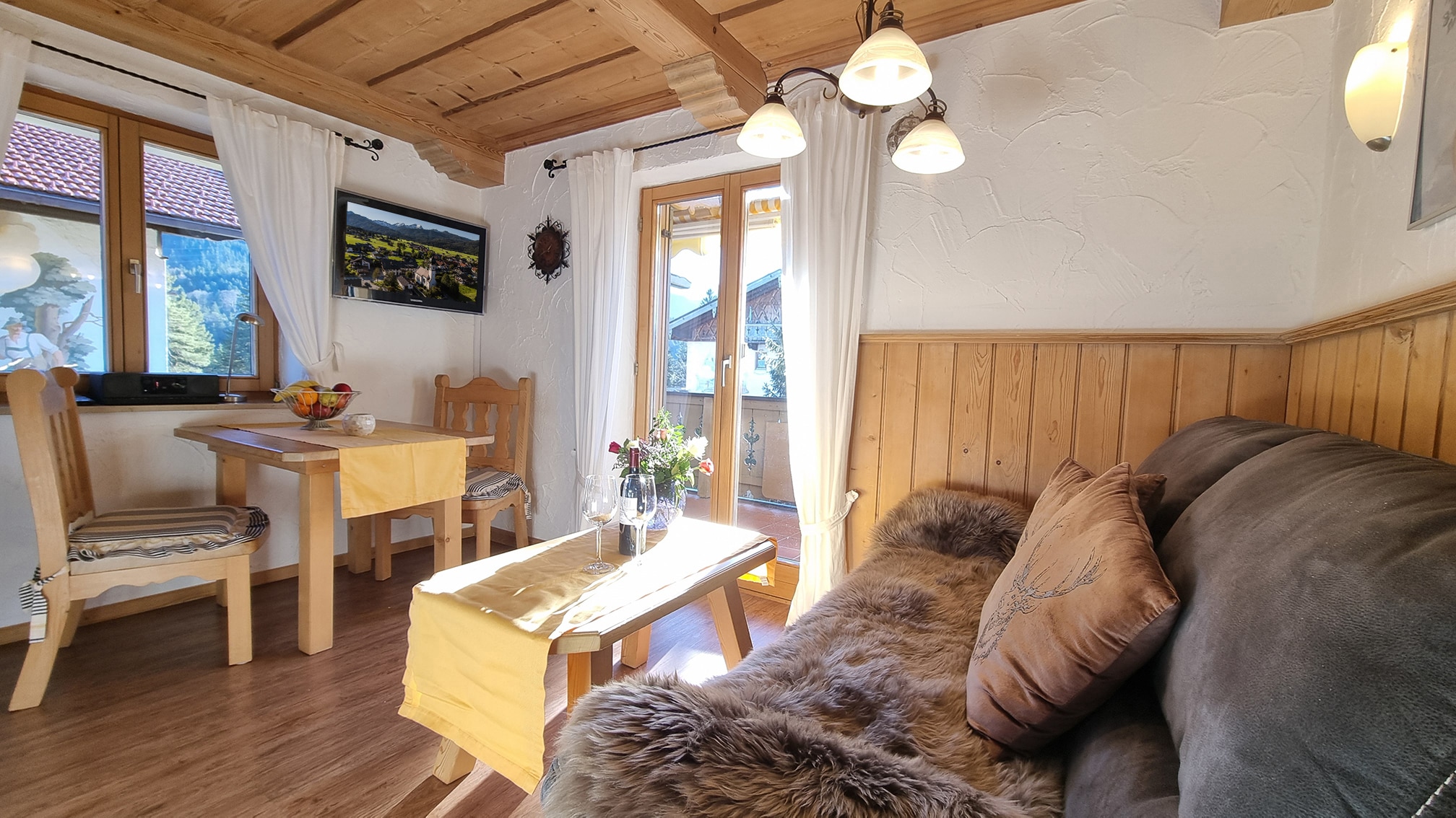 Die gemütliche Ferienwohnung „Soiern“ lädt zum Wohlfühlen und Entspannen ein. Freuen Sie sich auf einen herrlichen Gebirgsrundblick sowie einen großzügigen Ost- und Südbalkon mit Gartenmöbeln und Markise – ideal für sonnige Morgenstunden und entspannte Abende. Die allergikerfreundliche, neuwertige Wohnung verfügt über eine behagliche Wohnküche mit Sitzecke und Couch, ein separates Schlafzimmer sowie moderne Annehmlichkeiten wie Sat-TV mit großem Flachbildschirm und WLAN. Ein perfekter Ort für erholsame Urlaubstage in ruhiger, familiärer Atmosphäre.